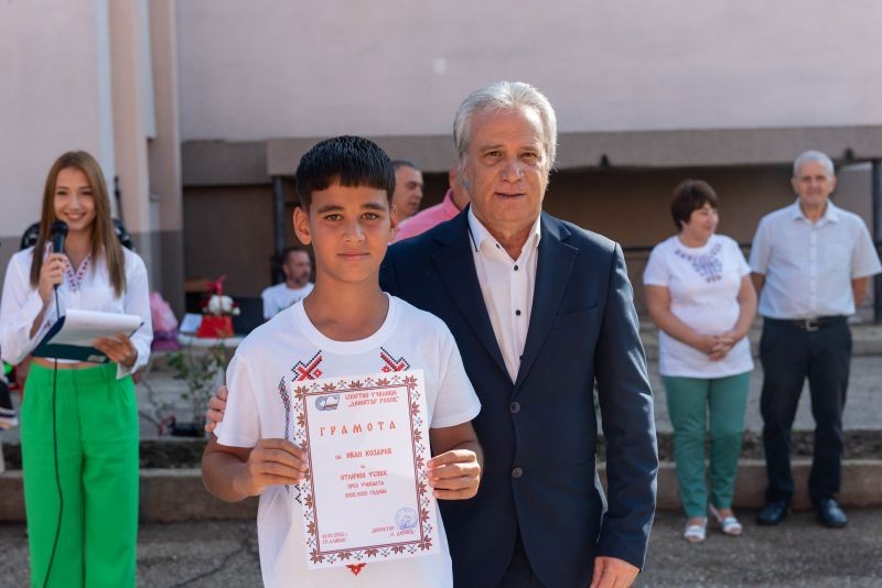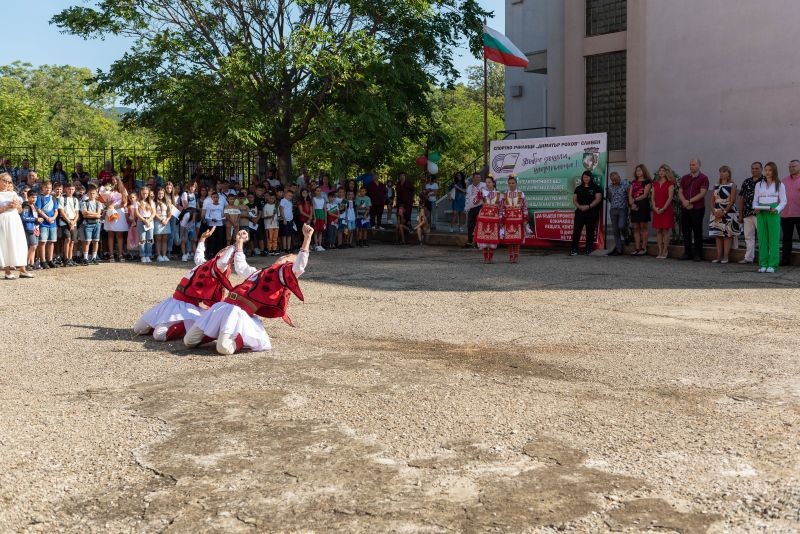 Председателят на Общински съвет Сливен Димитър Митев и Областния управител Марин Христов наградиха 36 отличници от миналата учебна година, а кметът Стефан Радев поднесе подаръци на шестимата пълни отличници. ДЮФА "Тракийче" закриха тържеството, след което петокласниците влязоха за първи път в класната си стая. Останалите ученици имаха първи "Час на класа".