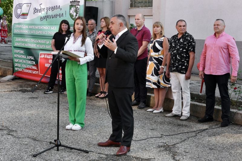 Директорът на училището Лъчезар Дойчев откри новата учебна година. Той пожела на своите колеги, ученици и родители спорна и благодатна година, изпълнена с усилени тренировки, нови победи и спортни постижения.