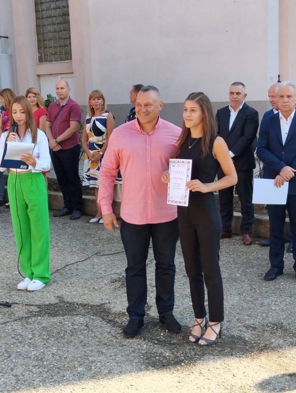 „България е дала много имена в спорта, които трябва да ви бъдат пример, че с постоянство, воля и хъс за победа, всеки един от вас може да стигне до първото стъпало от заветната стълбичка на победата“ заяви г-н Христов, след което награди няколко ученика с отличен успех. След церемонията той се ангажира да бъде посланик на развитието на спорта сред подрастващите.