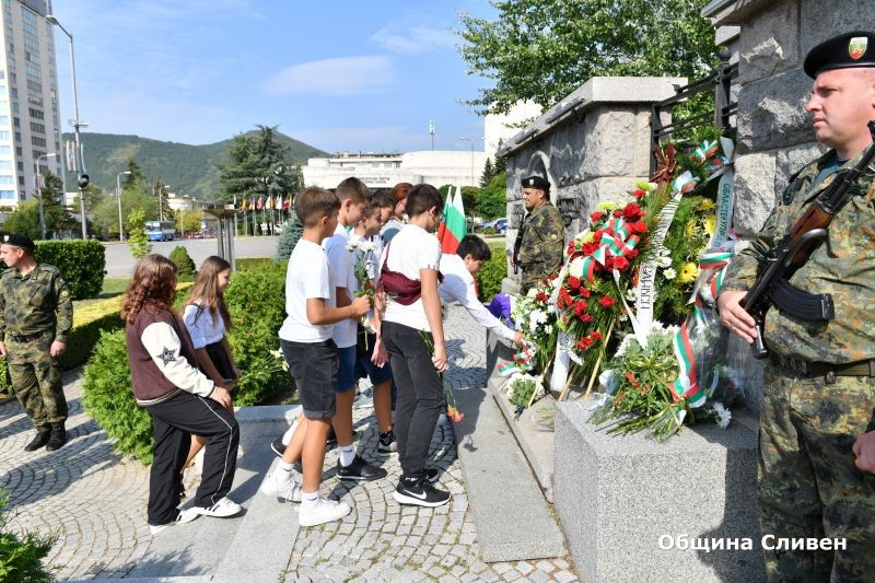 С ритуал – поклонение, тържествено издигане на националния флаг и поднасяне на венци и цветя пред паметника на Хаджи Димитър на едноименния централен площад Сливен отбеляза 138-годишнината от Съединението на България.