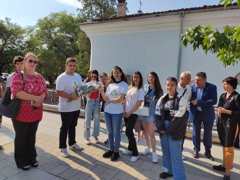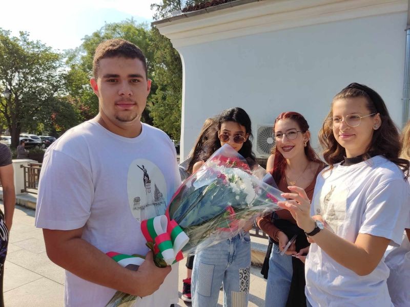 С цветя на почит и признателност пред паметника на Хаджи Димитър ученици от клуб „Памет“ към Хуманитарната гимназия "Дамян Дамянов" и техните учители отбелязахме 138-годишнината от Съединението.