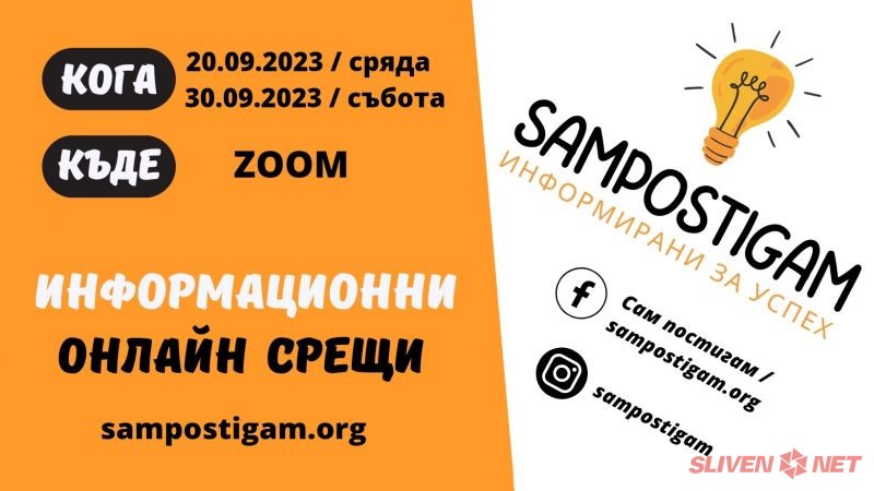 „Сам постигам – Информирани за успех!“ организира две онлайн информационни срещи през месец септември. Първата ще е на 20-ти септември от 18:00ч., а втората ще е на 30-ти септември от 10:00ч.