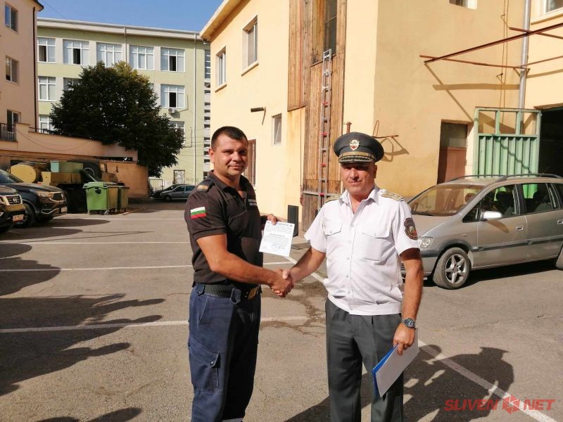 От името на министър Калин Стоянов бяха връчени две награди „ПОЧЕТЕН ЗНАК НА МВР-ІІІ СТЕПЕН” на старши инспектор Тошко Колев-началник група „Пожарогасителна и спасителна дейност” в РСПБЗН-Сливен и младши експерт Драган Иванов – началник на дежурна смяна в група „Оперативен център” на сектор „Пожарогасителна и спасителна дейност” към РДПБЗН-Сливен.