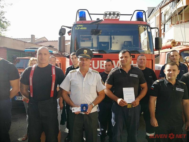 От името на министър Калин Стоянов бяха връчени две награди „ПОЧЕТЕН ЗНАК НА МВР-ІІІ СТЕПЕН” на старши инспектор Тошко Колев-началник група „Пожарогасителна и спасителна дейност” в РСПБЗН-Сливен и младши експерт Драган Иванов – началник на дежурна смяна в група „Оперативен център” на сектор „Пожарогасителна и спасителна дейност” към РДПБЗН-Сливен.