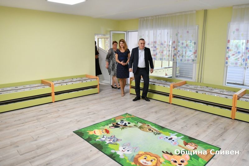 Детска ясла № 14 в Сливен ще радва малчуганите с изцяло нова визия. Сградата на детското заведение беше напълно обновена и вече има готовност да посреща най-малките жители на общината, които тази година ще прекрачат прага й за първи път. Удовлетвореност от извършените дейности и задоволство от крайния резултат изрази кметът Стефан Радев. Днес той и част от екипа му посетиха детската ясла, за да видят подобрените условия.