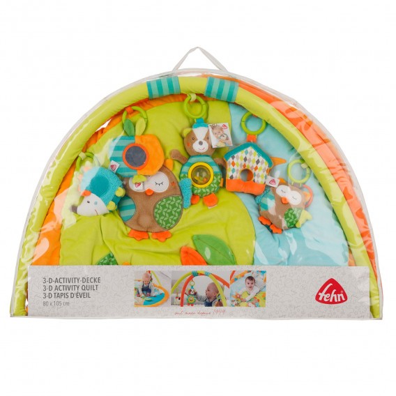 Както вече споменахме, вашето бебче започва постепенно да открива своите ръчички и крачета, а и действията, които може да извършва с тях. Поставени по гръб или по корем на активната гимнастика, мъниците спокойно могат да ритат с крачета и мятат с ръчички, без да има опасност да се наранят. Вградената подложка допринася за комфорта на дребосъчето. А висящите играчки стимулират още повече движения.