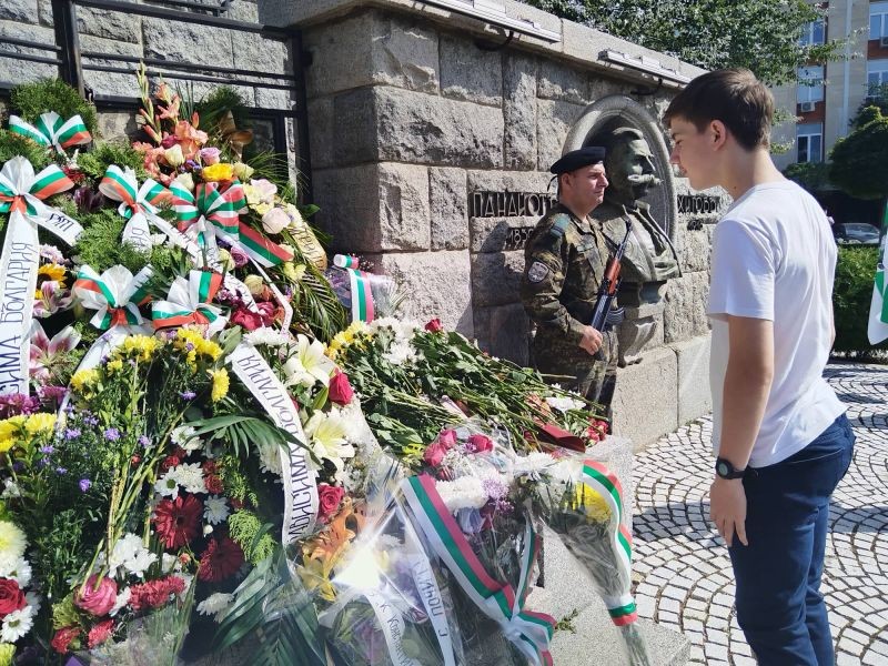 В 115-тата годишнина от обявяването на Независимостта на България, ученици и учители от Профилираната хуманитарна гимназия „Дамян Дамянов“ почетохме заедно паметта на българските герои, с посещение на емблематични исторически паметници в града. И тази година участници от клуб „Памет“ към Хуманитарна гимназия поднесоха цветя на признателност пред монументите на Шести артилерийски полк и на Хаджи Димитър.