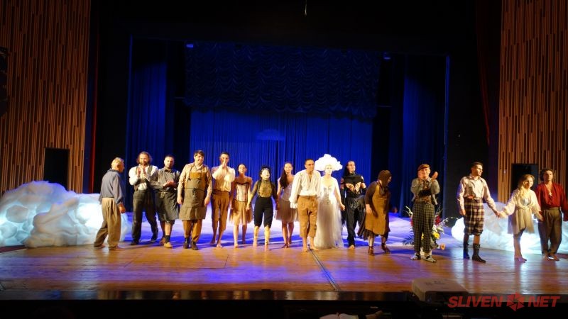 За приказната вечер, театралният колектив на ДТ „Гео Милев” получи кошница с цветя от Община Нова Загора и възторжени аплодисменти.
