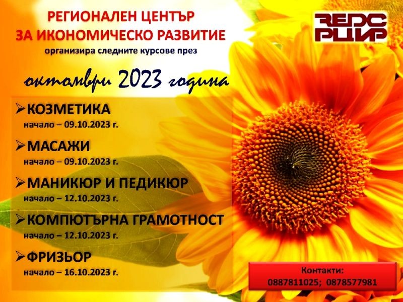 РЦИР Сливен организира следните обучения за месец октомври 2023 година: