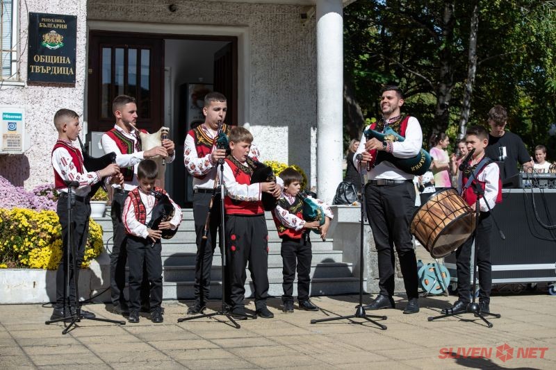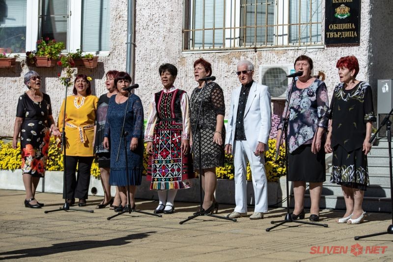 Празничната програма продължи пред общината с програма на самодейците от НЧ „Св. Св. Кирил и Методий 1914“ гр. Твърдица.