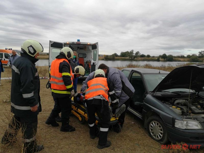 Пътникът в лекия автомобил е тежко пострадал, с невъзможност да напусне самостоятелно превозното средство. Екип на РСПБЗН-Сливен с помощта на хидравличен комплект за освобождаване на пострадали отстранява вратата от страната на пострадалия и безопасно го изважда и предава на екип на ЦСМП.