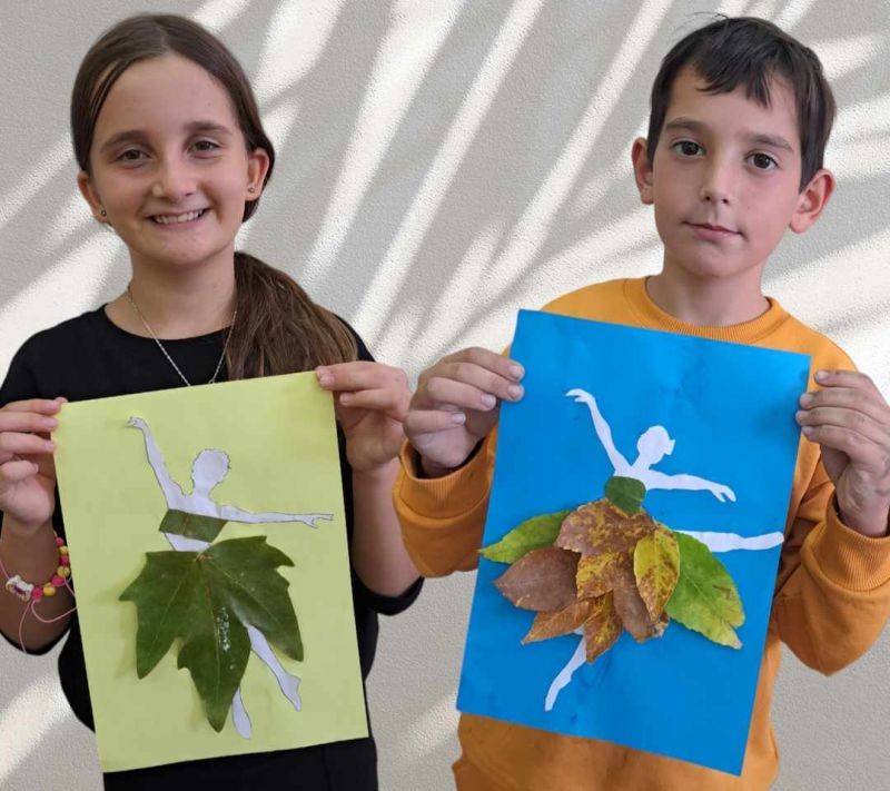 В часовете за Занимания по интереси учениците от група за ЦОУД в 4.клас показаха въображение и творчески умения, превръщайки се в модни дизайнери. С помощта на есенни листа, които събраха в двора на училището, сътвориха красиви рокли и аксесоари за балерини.