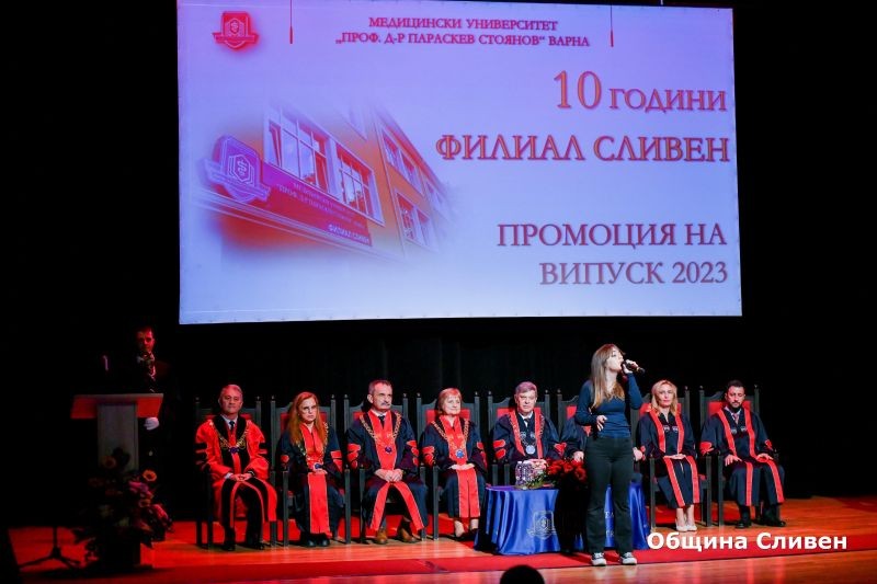 Под звуците на смесен хор „Добри Чинтулов“ при НЧ „Зора – 1860“ започна церемонията по дипломиране на студентите от Випуск 2023 на сливенския Филиал към Медицински университет „Проф. д-р Параскев Стоянов“ – Варна. Тържественото събитие се състоя в зала „Сливен“ и премина под знака на 10-ата годишнина от разкриването на Филиала в града под Сините камъни. Създаден през 2013 г., той приема тогава първия випуск студенти по специалностите „медицинска сестра“ и „акушерка“. Ръководството и академичния състав на структурата в Сливен използва случая да благодари на Община Сливен за дългогодишното и ползотворно партньорство.