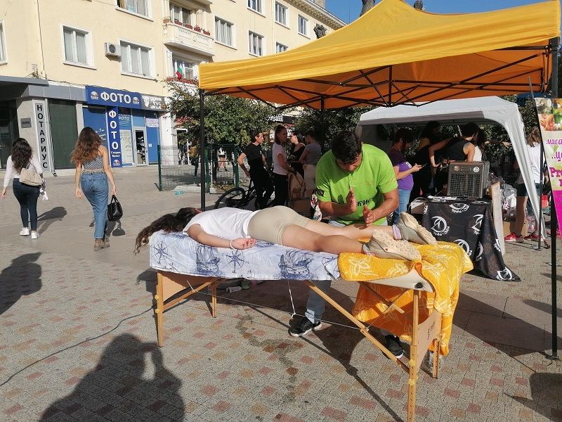 От старта на „Хайдушки пътеки“ до неговия финал оживлението на площада не стихна. Традиционният общински базар на местни продукти и изделия – мезета и суджуци, мед, билки, ръчно изработени бижута и украшения, масла от лавандула, ароматни свещи, привличаха купувачи през целия ден. Беше отворен и масажен салон на открито, за отмора на участниците. А всеки можеше да утоли жаждата си със студена наливна бира от известен местен производител. Десетки снимки бяха направени на красивата пейка с арка – декорация, която Общината постави за Димитровден, празника на Сливен.