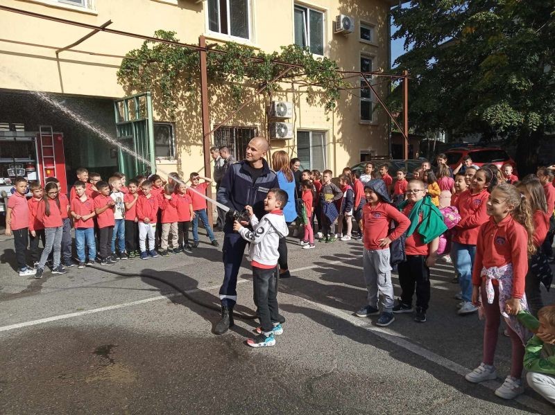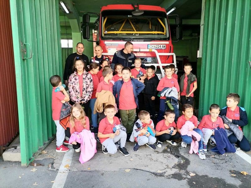 Второкласниците и техните учители от ОУ „Елисавета Багряна“ проведоха своя урок на темата „Професията на пожарникаря“ в Районна служба „Пожарна безопасност и защита на населението“ - Сливен.