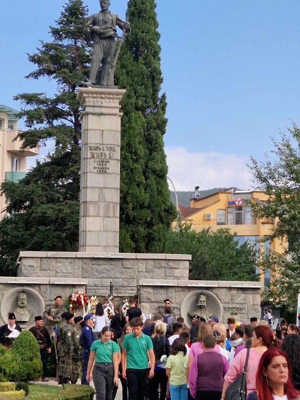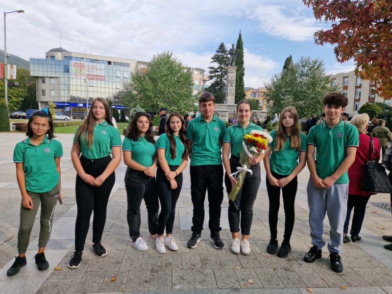 Учениците от клуб "Млади възрожденци" взеха участие в ритуала по поднасяне на цветя пред паметника на Хаджи Димитър по повод празника на града.