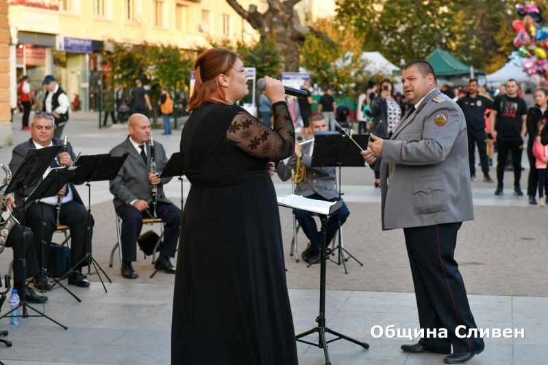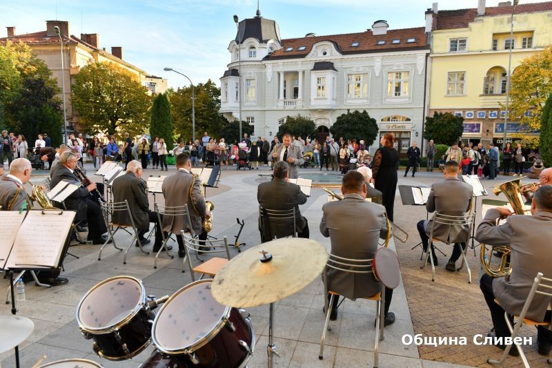 Военният духов оркестър в Сливен успя да създаде истинско празнично настроение с вечерен концерт на открито пред сградата на Общината. На 26 октомври музикантите събраха аплаузите с богат и разнообразен репертоар от стилове и жанрове – от вечните хитове на Франк Синатра, Карлос Сантана, джазовата пиеса „Афтършок“, балканските ритми на Горан Брегович до любими български шлагери и Чинтуловите възрожденски мелодии, които цяла България пее. Публиката чу солови изпълнения на саксофон и тромпет, както и на вокалистката Милена Гемеджиева.