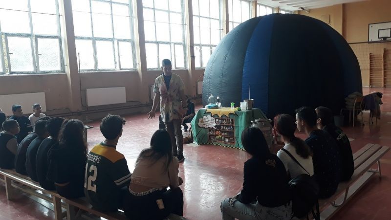 Във физкултурния салон на СУ „Йордан Йовков“ над 130 деца бяха космонавти за ден. Разпределени на пет групи, те участваха в двучасови занимания, присъстваха на вълшебни експерименти и демонстрации. А под огромен надуваем купол наблюдаваха планети, ярки съзвездия, галактики. Накрая всеки малчуган си отиде с подарък: рисунка с цвят по избор. Чрез рисунката децата опознаха свойствата на центробежните сили, които пред очите им разпръскваха боите и „рисуваха“ по листа с прецизност, невъзможна за човешката ръка. За разкош, с бутафорен транспарант на всяко дете бе направена снимка в костюма на астронавт – още един незабравим спомен от света на Космоса.