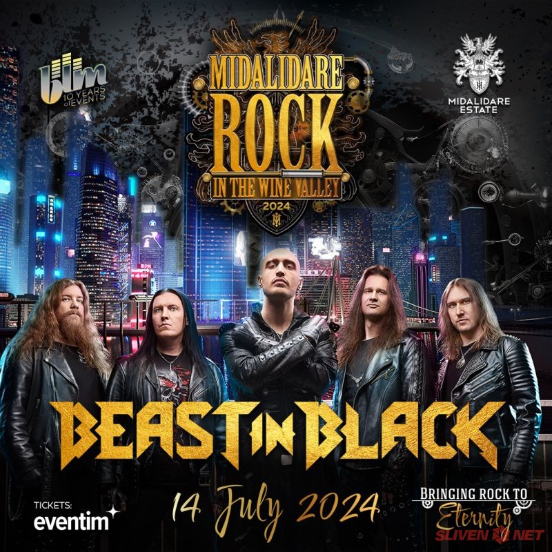 Beast in Black също се включват в Midalidare Rock In The Wine Valley 2024. Пауър метал бандата от Хелзинки ще свири на 14 юли, преди хедлайнера за деня Deep Purple. Основани през 2015 от китариста и автор на песни Anton Kabanen, Beast in Black са силно повлияни от групи като Judas Priest, Manowar, W.A.S.P., Accept и Black Sabbath. Името на групата е почит към японската манга и аниме поредица Berserk. През 2021 г. Beast in Black издават третия си албум Dark Connection. Албумът става номер едно във Финландия, също така е успешен и в Швеция, Швейцария, САЩ, Англия, Германия и Япония.
