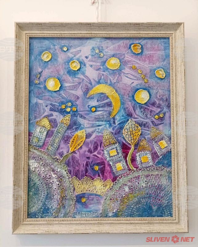 Експозицията се състои от 19 картини и представлява колаж на дантела и смесена техника с акрилни бои.