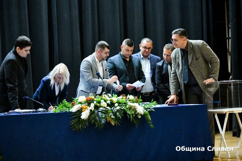 В рамките на сесията избраният за трети мандат кмет на община Сливен Стефан Радев, новите общински съветници и кметове на кметства положиха клетва.