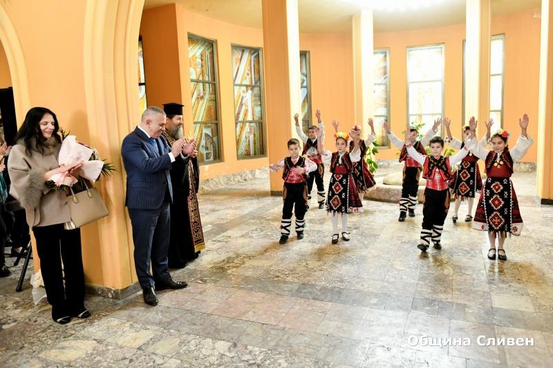 Добромира Стоянова от вокално студио „Усмивка“ изпълни химна на България. Своя поздрав с танц отправиха и деца от Центъра за подкрепа за личностно развитие – Детски комплекс-Сливен, а отец Евгений Янакиев, ставрофорен иконом и протосингел на Сливенската митрополия прочете молитва за здраве и благоденствие. От името на Сливенския митрополит Иоаникий той подари на кмета две икони.