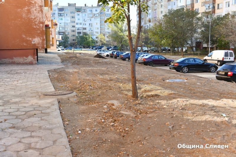 В района на изградения канализационен клон са извършени всички дейности, свързани с изпълнение на вертикалната планировка на обекта - възстановени са тротоарните настилки, монтирани са решетъчни тела за паркинг, теренът е подравнен.