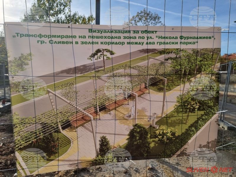Конструкцията ще бъде изградена в разделителната ивица по ул. „Никола Фурнаджиев“, между улиците „Петко Д. Петков“ и “А. С. Пушкин“. Предвидено е обогатяване на съществуващото озеленяване чрез засаждане на нови широколистни и иглолистни дървесни видове, вечнозелени и цъфтящи храсти и многогодишни цветя. Ще бъдат изградени кътове за отдих, където ще бъдат монтирани градински пейки, водни елементи - стени, както и чешми за хора и животни.