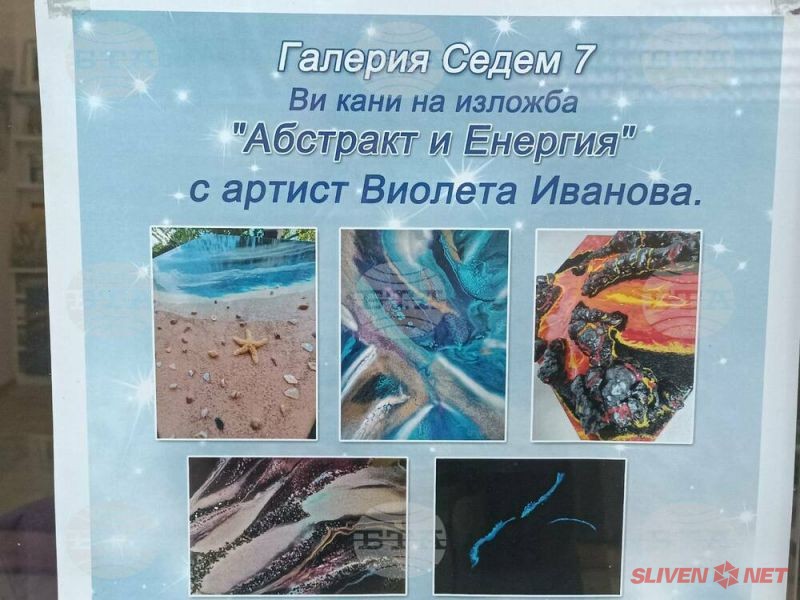 Изложба "Абстракт и енергия" на живеещата в Чикаго Виолета Иванова ще бъде открита днес в сливенската галерия "Седем", каза за БТА собственичката на галерията Дора Куршумова.