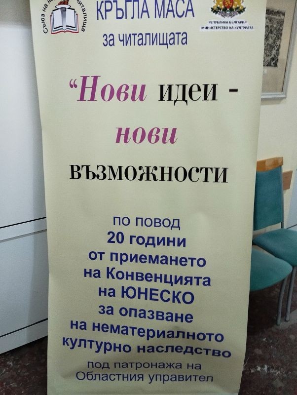 Председатели на читалища и читалищни дейци от Сливенска област се събраха на Кръгла маса, проведена на 24 ноември(петък)за да обсъдят бъдещето развитие на читалищата и тяхната роля в съхранението на нематериалното културно наследство.