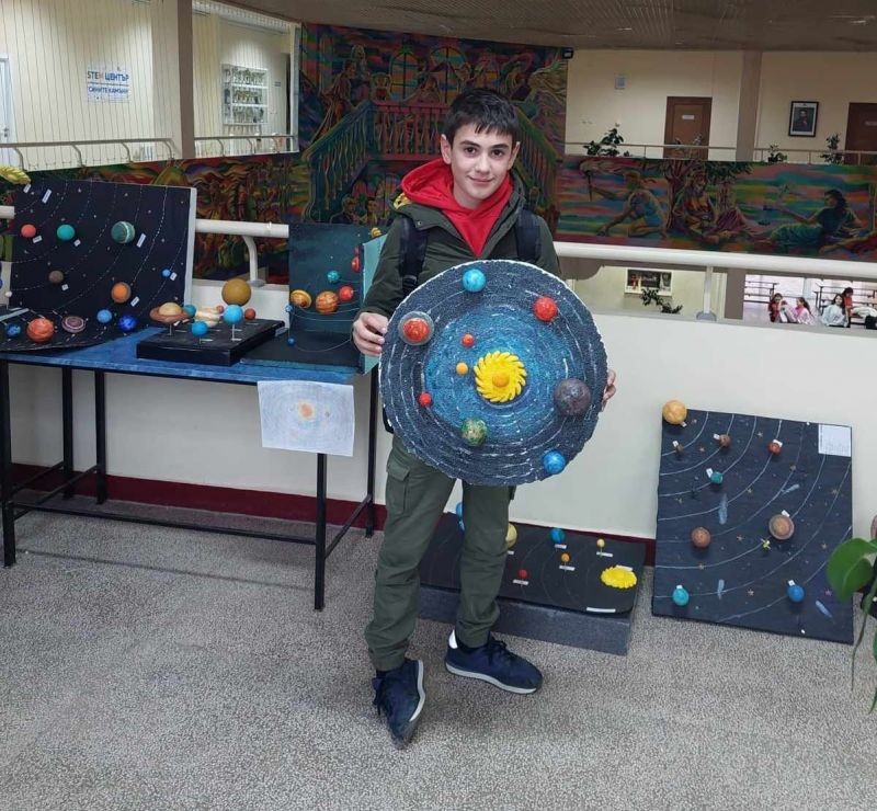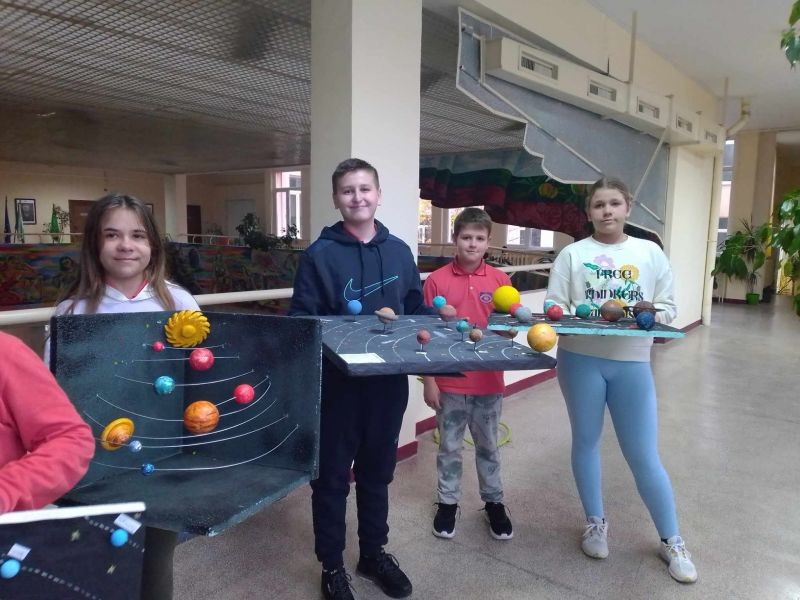 Младите творци приложиха наученото по човекът и природата, като изработиха прекрасни модели на тема „Слънчевата система“. Проектите са подредени в атрактивна изложба, която могат да разгледат всички учители, ученици и гости. Всички участници в изложбата са използвали разнообразни и оригинални материали, за да онагледят своята представа за Космоса и планетите, проявили са оригинално мислене и лично творчество. Децата отново доказаха, че ученето чрез правене е ефективно, а знанията са трайни. А ние се стараем да развиваме детското любопитство към нещо също толкова ценно - това прекрасно качество любознателност!