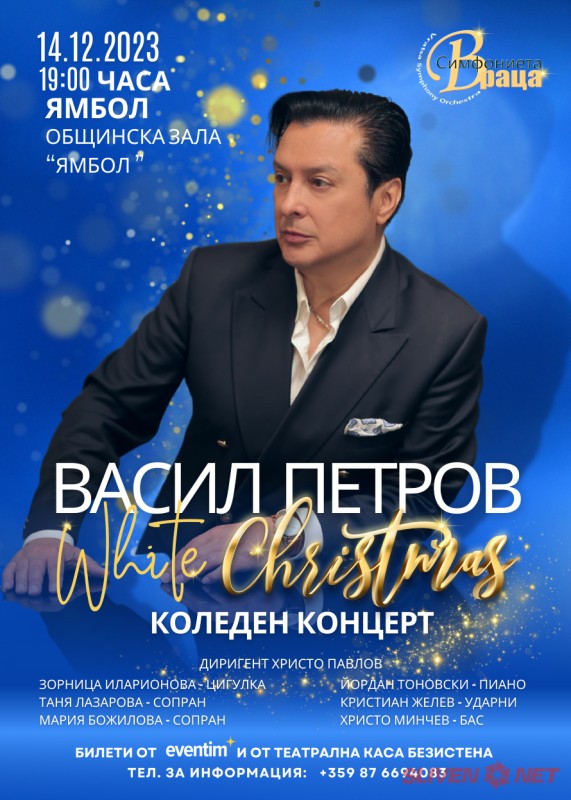В този празничен сезон, обичаната джаз звезда Васил Петров се отправя на Коледно турне в България, което минава през град Сливен и Ямбол на 13 декември и 14 декември. Концертите озаглавени „White Christmas” (Бяла Коледа) са с Врачанска Филхармония с маестро Христо Павлов, джаз музикантите Йордан Тоновски(пиано), Христо Минчев(бас), Кристиан Желев (ударни), изумителната цигуларка Зорница Иларионова и изключителното сопрано Таня Лазарова.