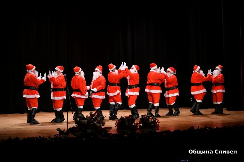 В коледната магия, оживяла на сцената, се изявиха още малките таланти от Детско-юношески фолклорен ансамбъл „Тракийче“ и от Ансамбъла за народни песни и танци. Кулминацията на вечерта бе познатата на всички песен „Jingle Bells“ – на сцената емоцията си изразиха с танц много изпълнители, облечени в костюм на чакания от малки и големи белобрад старец – Дядо Коледа.