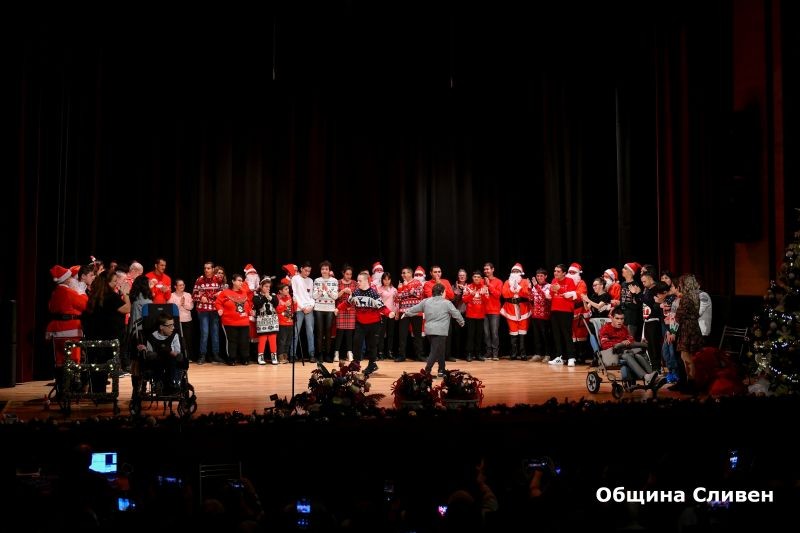 Тържество на борбения човешки дух, креативност, вдъхновение и коледно вълшебство. Това бяха само малка част от емоциите, които сценичните изпълнения на потребителите от Дневния център за пълнолетни лица с увреждания в квартал „Клуцохор“ и от Дневния център за деца и пълнолетни лица с увреждания „Св. Стилиян Детепазител“, подариха на публиката в зала „Сливен“. Коледният празник на децата и младежите от социалните центрове предизвика истински интерес и събра жители и гости на Сливен, приятели и съмишленици. Уменията и талантите на изпълнителите оживяха в познати български стихотворения и музикални разкази, дуети, които не оставиха публиката безразлична и се радваха на бурни аплодисменти.