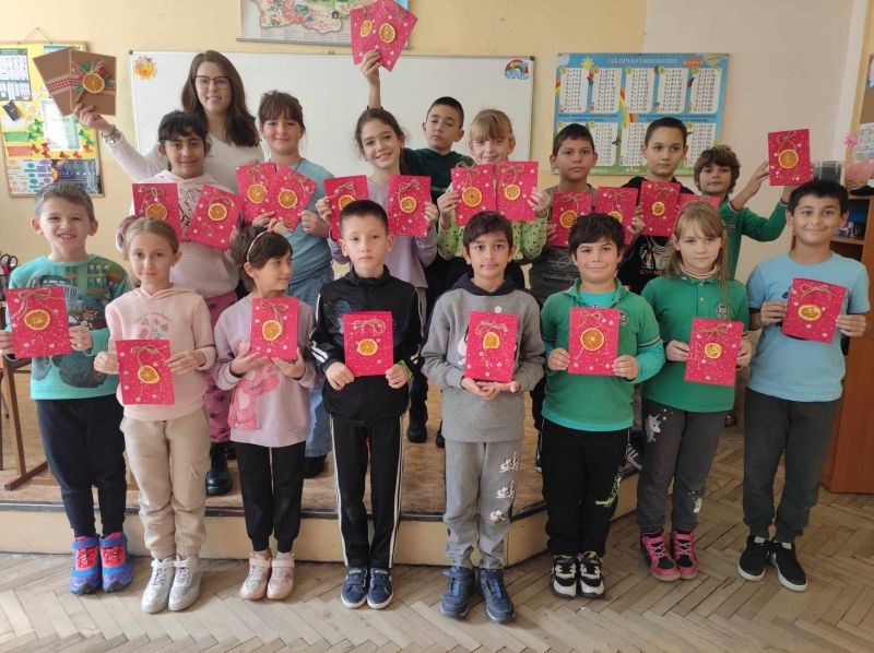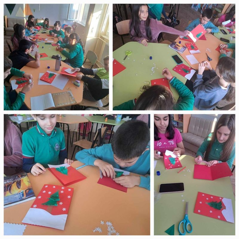 Учениците от групи за ЦОУД в трети и четвърти клас, заедно със своите учители - г-жа Яница Йорданова и г-жа Таня Чотова, се включиха в инициатива за размяна на коледни картички.