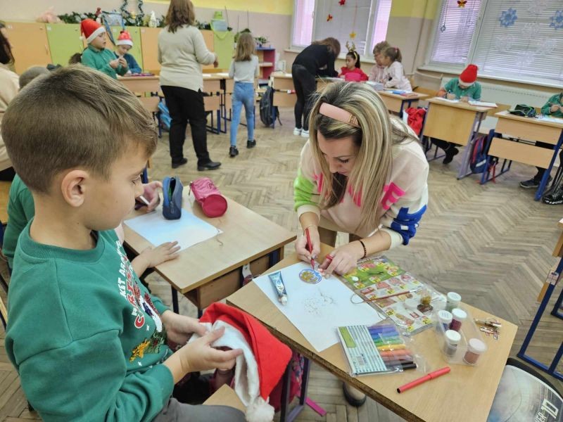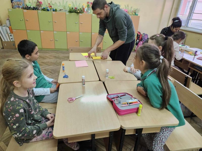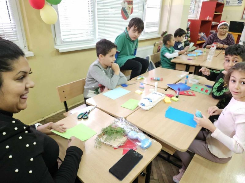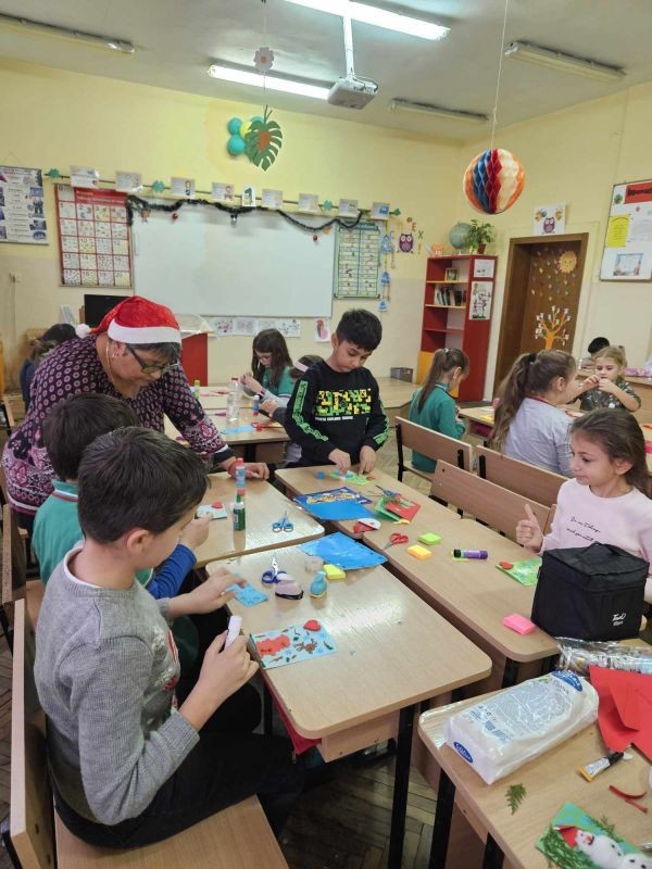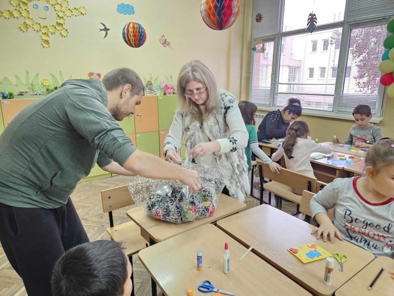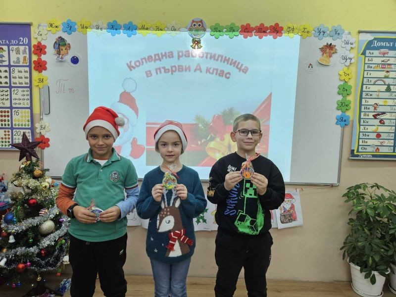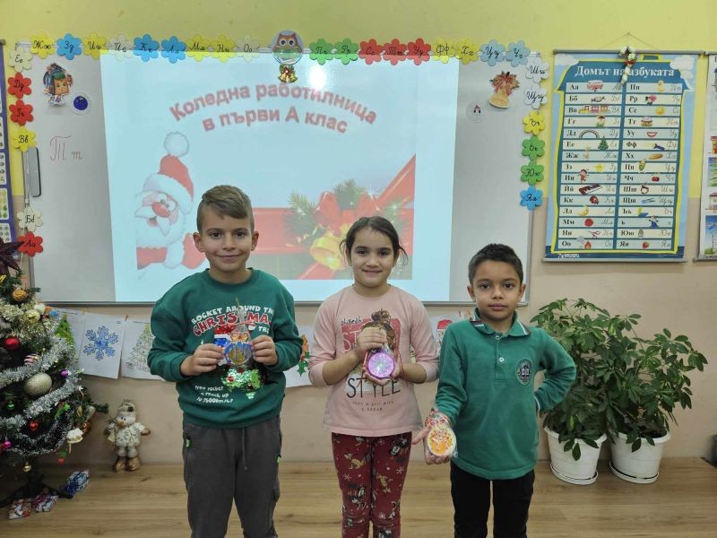 Коледният дух завладя класните стаи на 1. "А" и 1. "Б" клас. Учениците заедно с мама, тати и баба, с огромно желание и завидна сръчност, изработиха изделия за предстоящия коледен базар в училище. Инициативата, озаглавена "С играчките на мама" е част от НП "Заедно за всяко дете", модул 2 "Добри практики за взаимодействие с родителите на децата и учениците в задължителна предучилищна и училищна възраст".