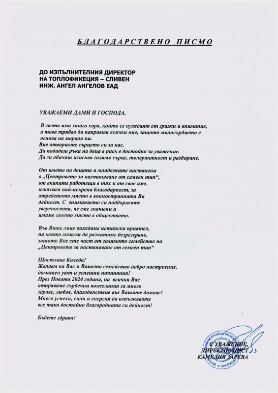 С наближаването на този светъл празник, ръководството на „Топлофикация – Сливен – инж. Ангел Ангелов“ ЕАД се включи в трепетното очакване заедно с децата от „Център за настаняване от семеен тип за деца без увреждания“ – гр. Сливен.