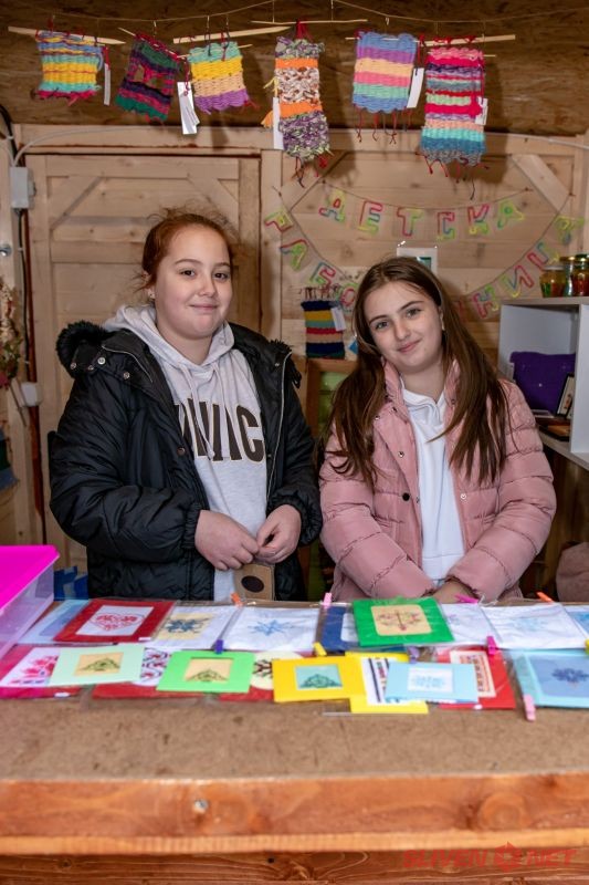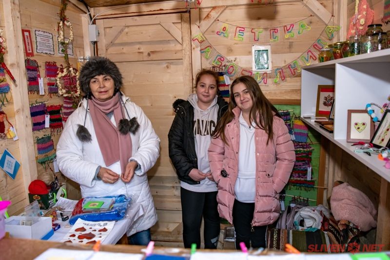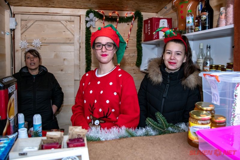В уюта на новопостроените дървени къщички започна и благотворителния коледен базар. Бяха изложени красиви коледни изделия изработени от сръчните ръце на децата и ръководителите от детските градини в гр. Твърдица и кв. Козарево, Дома за мъже с умствена изостаналост, на търговците с ръчно направени сувенири, вкусни сладкиши, ароматни кестени, греяно вино и топъл шоколад.