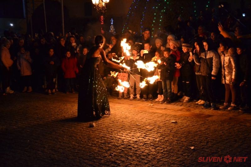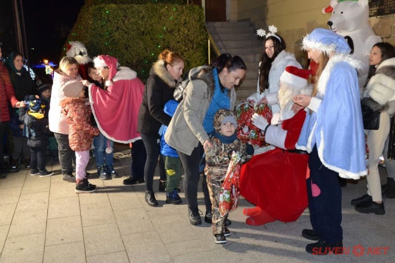 Греещите очички на децата бяха вперени към сцената, в очакване на Дядо Коледа и Снежанка, но преди това изгледаха в захлас представлението „Куклата на Мери“ подготвено специално за тях от актьорите на Държавен куклен театър – Сливен и огнено представление, представено от артистите на танцовата група „Bright bites“.