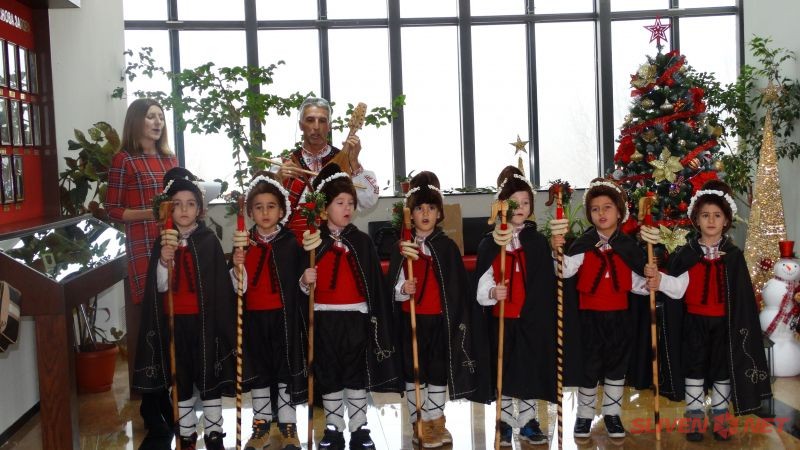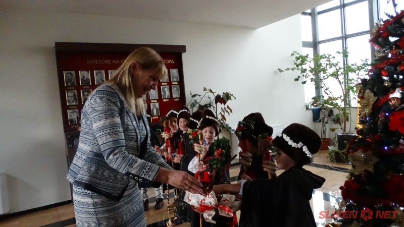 Блага вест носят коледарите – за раждането на Божия син. Думите им са магически и където минат, през предстоящата година ще има плодородие, здраве, изобилие и благодат. Малките коледарчета запяха традиционни песни, изпълнявани в дните преди Рождество, потропнаха с хороводна стъпка и с почукване с красивите си геги затвърдиха „Да бъде!“ – да се сбъдне изреченото от сърце. Дариха кмета на Общината Галя Захариева с обреден кравай, а тя им поднесе коледни сладки. Да са здрави, да се веселят по празниците и пак да гостуват и да попеят, им пожела. А за да остане споменът от коледарската благословия по Игнажден, си направиха снимки край красивата елха.
