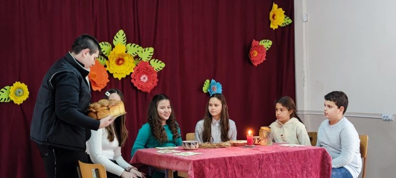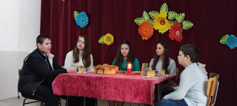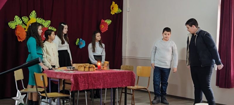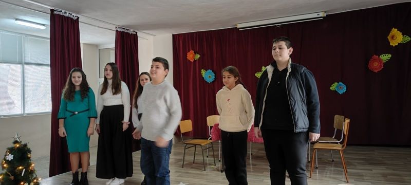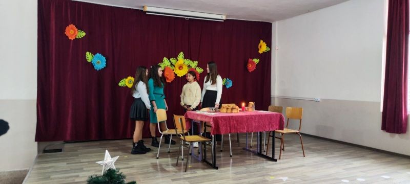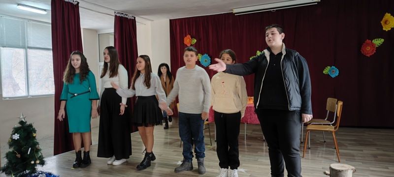 Младите актьори от групите за Занимания по интереси "Звезди в косите" и "Артистът в мен" с ръководители Анна Енчева и Ивелина Ангелова ни потопиха в атмосферата на празничната Бъдни вечер. С много артистичност и коледен дух те заредиха присъстващите и пресъздадоха обичаите и традициите на Бъдни вечер.