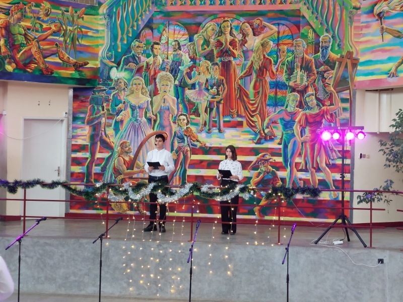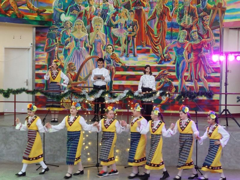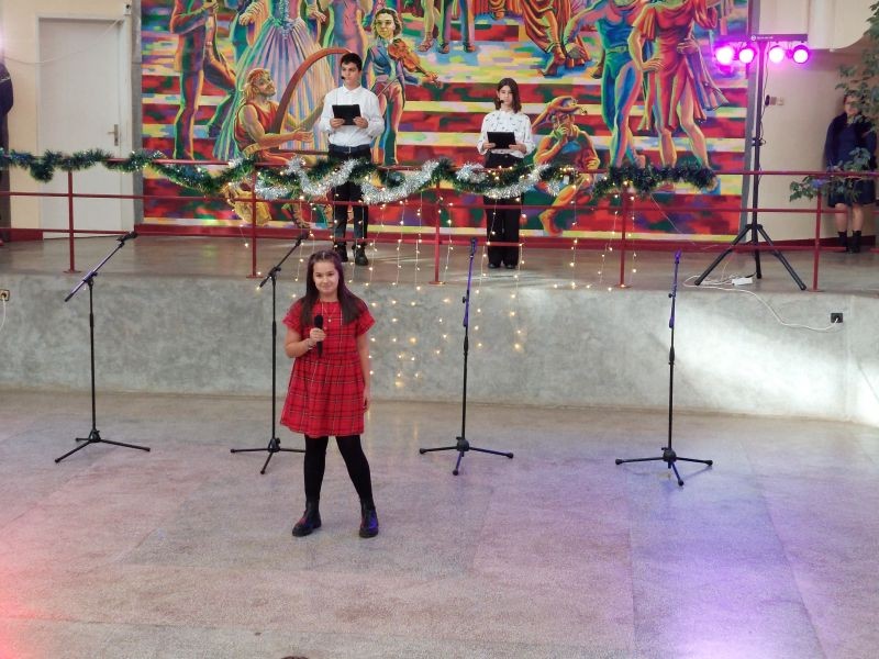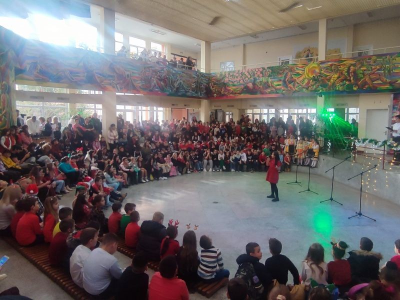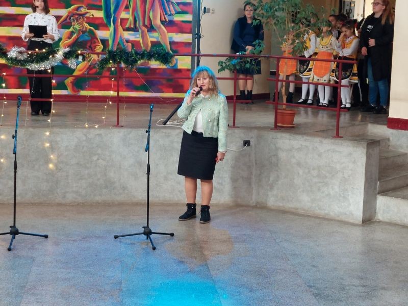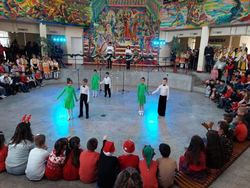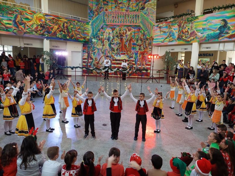 Ученици, учители и родители се събраха във форума, за да изгледат празничната програма на училището по случай Коледа и Нова година.