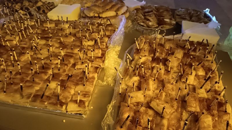 За всички на площада бяха подготвени банички с късмети, сладки, бяло и червено вино.