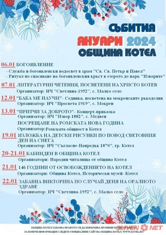 20-21 януари /събота и неделя/ – БАБИНДЕН В ОБЩИНА КОТЕЛ