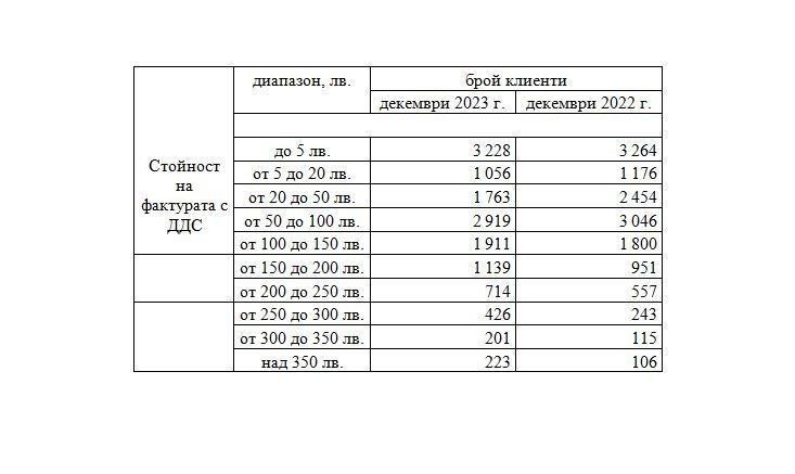 Сравнение на месечните фактурирани суми за заплащане за месеците декември 2023 г. и декември 2022 г.