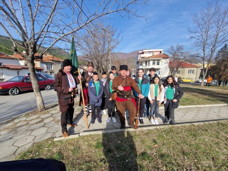 Учениците от клуб "Млади възрожденци" при СУ "Йордан Йовков" - Сливен взеха участие в поднасянето на цветя на признателност в памет на героите, отдали живота си за освобождението на град Сливен.
