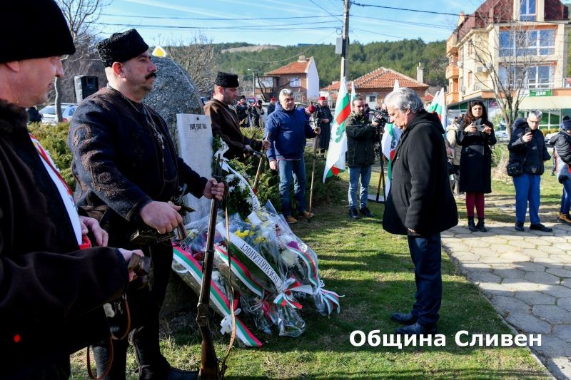 Цветя поднесоха още председателят на Общински съвет-Сливен Димитър Митев и общински съветници, областният управител Маринчо Христов, заместник-командирът на Център за подготовка на специалисти полковник Данчо Николов, представители на образователни и културни институции, граждани. Цветя бяха поднесени от името на Сливенска митрополия, народните представители Десислава Танева, Мария Белова и Татяна Султанова и от директора на ОДМВР комисар Димитър Величков.