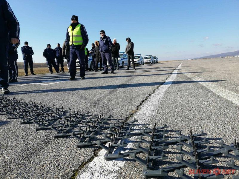 Полицаи преследваха нарушители с автомобили и разпъваха ленти с шипове
