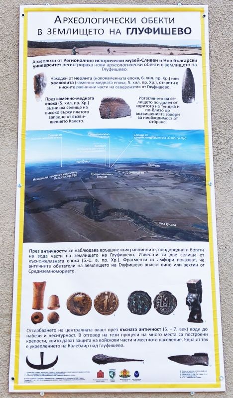 Днес колегите от Регионален исторически музей - Сливен Теодора Недялкова, Петър Петров и Чавдар Тодоров, със съдействието на г-н Георги Кънев - кмет на с. Глуфишево, поставиха информационна табела за новорегистрираните археологически обекти в землището на селото.