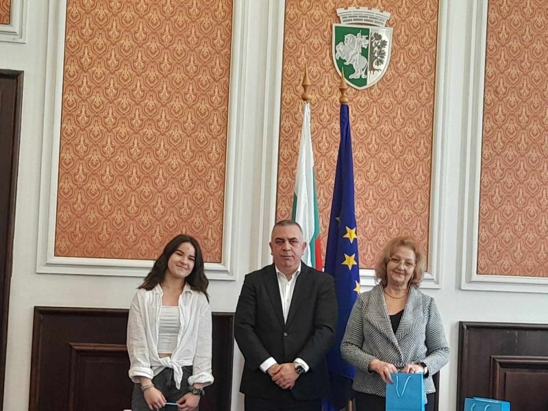 Той връчи и поздравителен адрес до директора на училището Лъчезар Дойчев за успешното участие на възпитаниците на Спортното училище Далия, Десислава, Марияна, Симона и Християна. „Вашите възпитаници показаха познания, творчески потенциал и най вече емпатия относно дейността на доброволците. Използвам случая да поздравя и техните преподаватели г-жа Нели Димитрова и г-жа Жанета Цанкова, с чиято помощ, вярвам, децата успяват да надграждат и да черпят вдъхновение. За пореден път доказахте, че за Вас и екипа Ви професията е призвание! Благодаря!“, се казва в поздравителния адрес на кмета Стефан Радев.